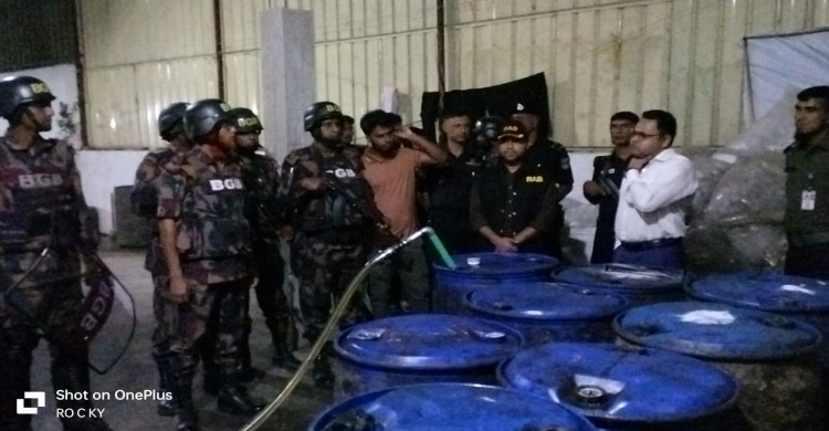 নারায়ণগঞ্জের রূপগঞ্জে অবৈধ সয়াবিন তেল কারখানায় বিজিবি-র্যাবের যৌথ অভিযান; কারখানা সিলগালা