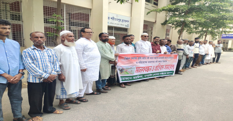 বাগেরহাটে ঠিকাদার পরিবর্তন করে দ্রুত সময়ের মধ্যে লক্ষ্মীখালী ব্রিজ নির্মাণের দাবিতে মানববন্ধন