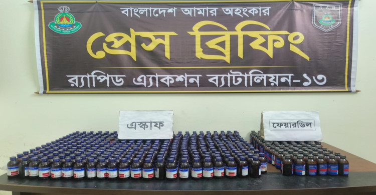 কালিগঞ্জে র্যাপিড অ্যাকশন ব্যাটালিয়ন-১৩-এর অভিযানে ২০০ বোতল এস্কাফ জব্দ, আটক ১