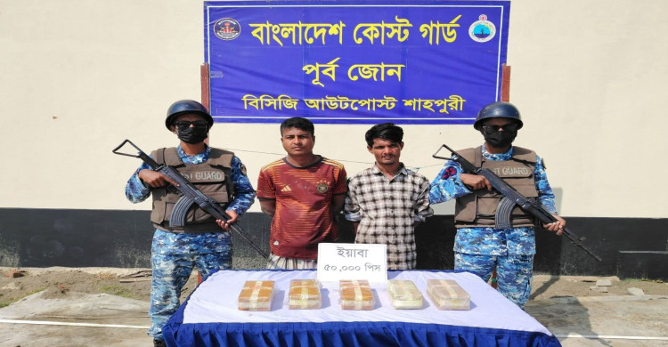 কোস্টগার্ডের অভিযানে দুই কোটি ৫০ লক্ষ টাকার ই'য়া'বা'সহ দুই মাদক পাচারকারী আটক