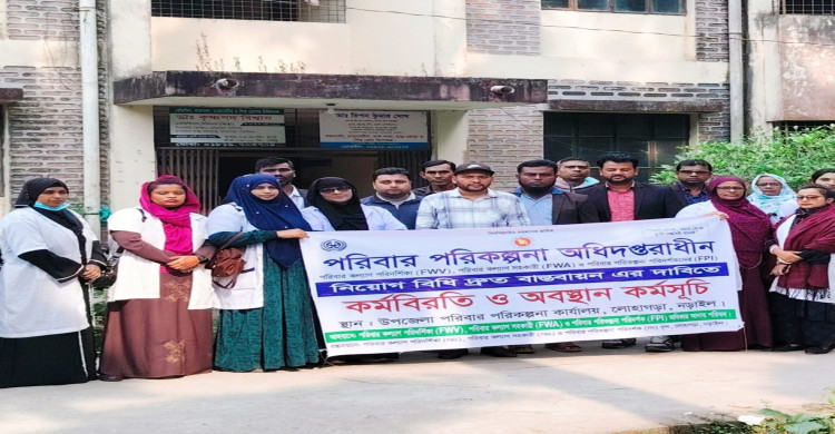 লোহাগড়ায় নিয়োগবিধির দাবিতে পরিবার পরিকল্পনায় চাকরিরত তৃতীয় শ্রেণীর কর্মচারীদের কর্মবিরতি ও অবস্থান কর্মসূচি পালন