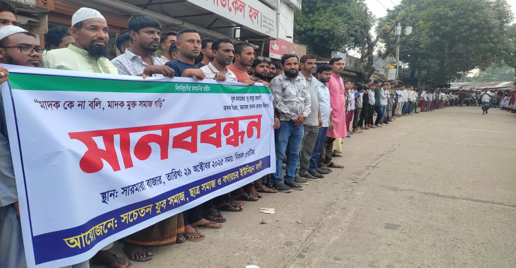 বকশীগঞ্জে মাদকমুক্ত সমাজ গঠনের দাবিতে মাদক বিরোধী মানববন্ধন অনুষ্ঠিত
