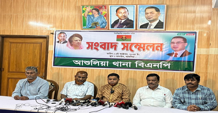 মিথ্যা মামলা দেওয়ার প্রতিবাদে সংবাদ সম্মেলন আশুলিয়া থানা বিএনপির