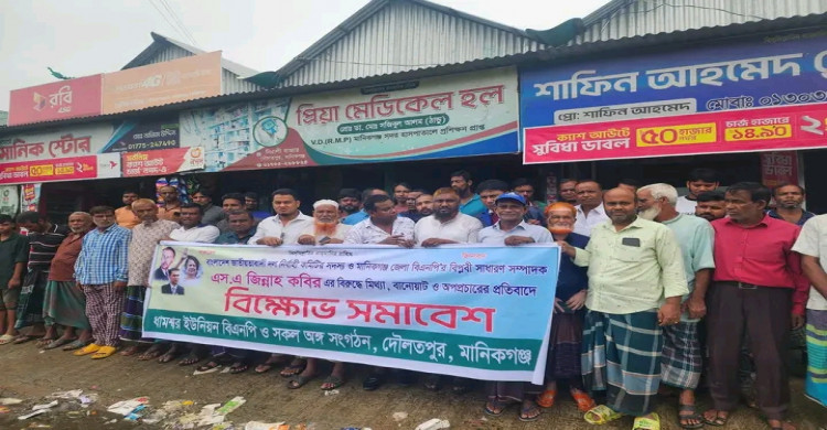 মানিকগঞ্জে বিএনপি নেতার বিরুদ্ধে অপপ্রচার, প্রতিবাদে বিক্ষোভ সমাবেশ