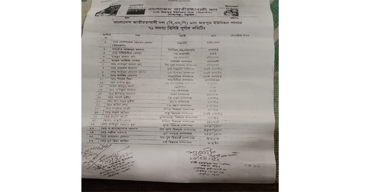নড়াইলের লোহাগড়া উপজেলার ৬নং জয়পুর ইউনিয়ন বিএনপি কমিটি সক্রিয় আওয়ামীলীগ পরিবারের সদস্য দিয়ে ঢেলে সাজানোর অভিযোগ