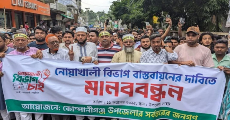 নোয়াখালীকে স্বতন্ত্র বিভাগ চেয়ে মানববন্ধন