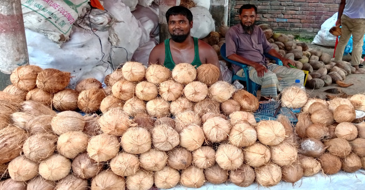 শারদীয় দুর্গা উৎসবে জয়পুরহাটের হাট-বাজারে নারিকেলের দামে আগুনের ঝাঁঝ
