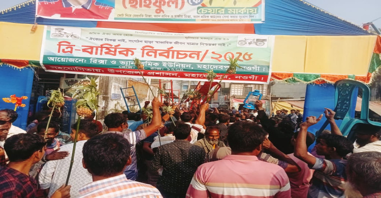 মহাদেবপুরে রিকশা ও ভ্যান শ্রমিক ইউনিয়নে উৎসবমুখর পরিবেশে ভোটগ্রহণ চলছে