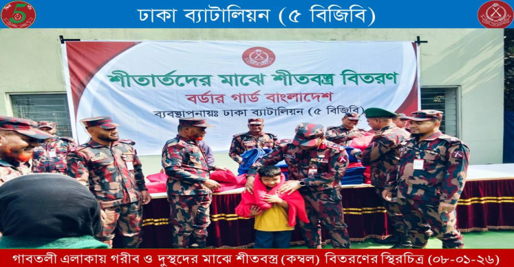 ঢাকার গাবতলীতে শীতার্ত ও অসহায় ৩০০ জনকে শীতবস্ত্র দিলো বিজিবি