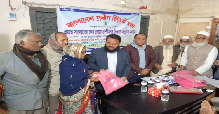 শৈলকুপায় প্রবীণ হিতৈষী সংঘের সদস্যদের মধ্যে শীতবস্ত্র বিতরণ