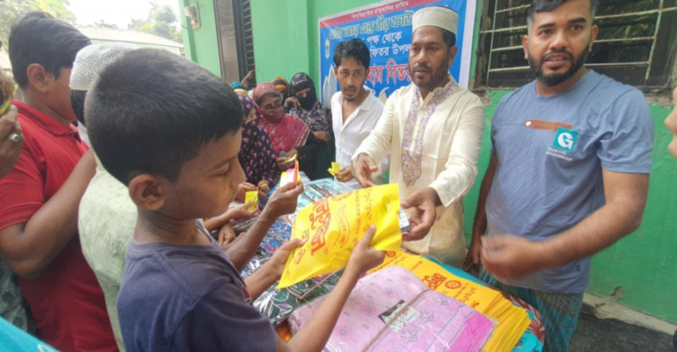 ব্যক্তিগত উদ্যোগে লালমোহন পৌরসভায় পিছিয়ে পরা মানুষদেরকে ঈদ উপহার বিতরণ