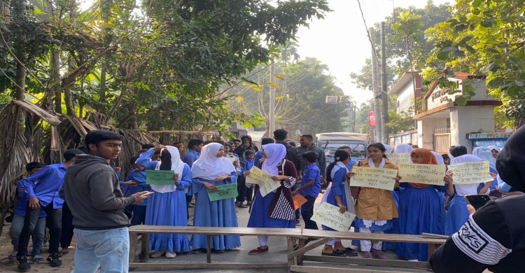 সুন্দরঘোনা মাধ্যমিক বিদ্যালয়ে শিক্ষকতার আড়ালে অনৈতিক কার্যকলাপের অভিযোগ অভিযুক্ত শিক্ষকের অপসারণ দাবিতে শিক্ষার্থী–অভিভাবকদের বিক্ষোভে রাস্তা অবরোধ