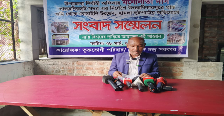 লালমনিরহাটে বিনা নোটিশে উচ্ছেদ ও লুটপাটের অভিযোগ, সুষ্ঠু বিচারের দাবিতে সংবাদ সম্মেলন