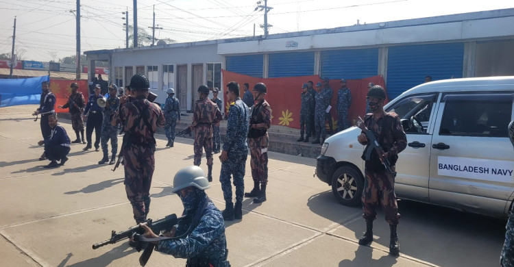 ভোট কেন্দ্র দখল করতে আসায় যৌথ বাহিনীর প্রতীকি মহড়া