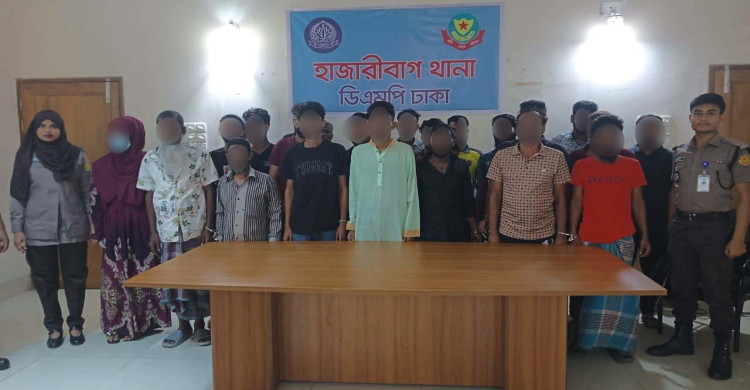 গ্রেফতারকৃতরা হলো- ১। গোলাম মাওলা রিপন (৫৩) ২। মোসাঃ রুপা বেগম (২৯) ৩। মোঃ বিপ্লব মিয়া (২৪) ৪। মোঃ রাতুল (২০) ৫। মোঃ বিল্লাল (৩৮) ৬। মোঃ রিদোয়ান (২৭) ৭। হ্যাপী আক্তার ওরফে সুমাইয়া আক্তার (২০) ৮। বৃষ্টি (১৮) ৯। বর্ষা (১৮) ১০। জহিরুল ইসলাম (২৩) ১১। জীবন (২৩) ১২। আবু সালেহ সজিব (৩৬) ১৩। আজিজুর ইসলাম (২১) ১৪। মীর মনিরুল ইসলাম (৪৫) ১৫। মোঃ হাসান খোকন (২৭) ও ১৬। আইনের সাথে সংঘাতে জড়িত শিশু।