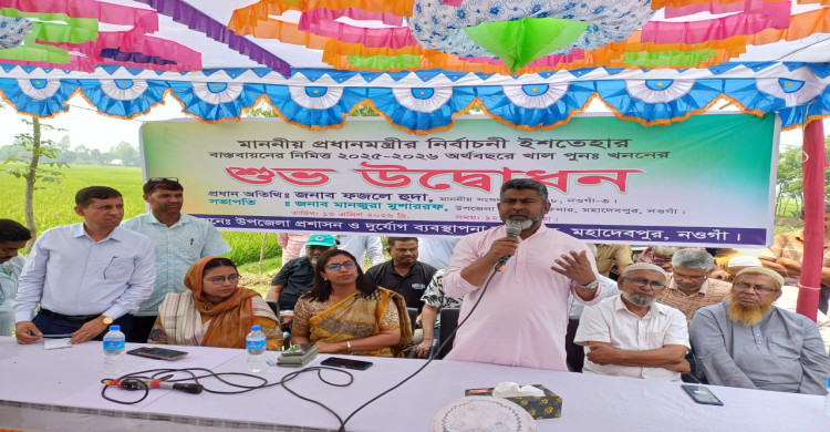 মহাদেবপুরে তারেক রহমানের নির্বাচনী ইশতেহার বাস্তবায়নে খাল খননের উদ্বোধন করলেন - এমপি ফজলে হুদা
