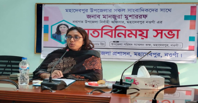 মহাদেবপুরে সাংবাদিকদের সাথে নবাগত ইউএনও মানজুরা মুশাররফ'র মত বিনিময়