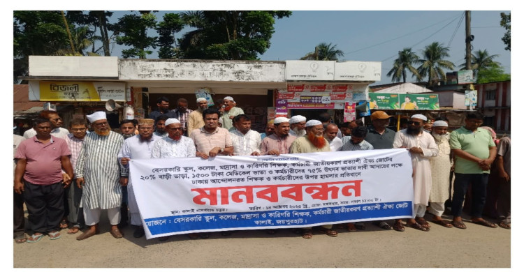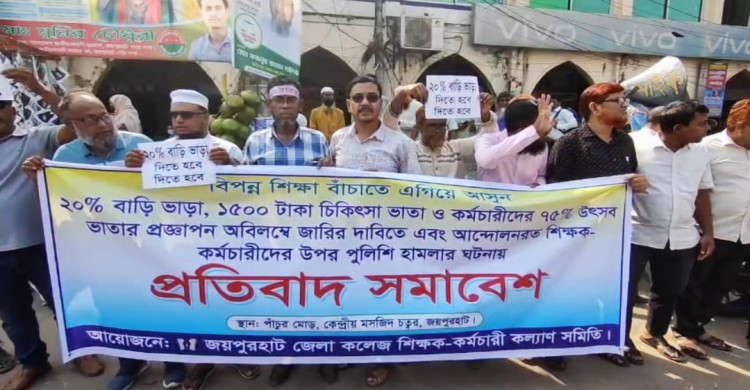 জয়পুরহাটে শিক্ষক-কর্মচারীদের মানববন্ধন