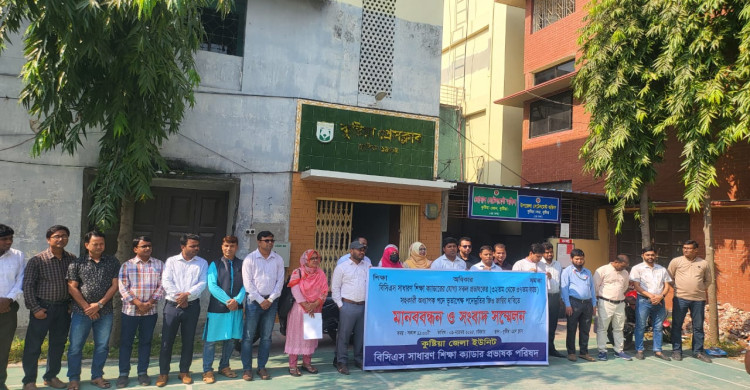 সহকারী অধ্যাপক পদে ভূতাপেক্ষ পদোন্নতির দাবিতে কুষ্টিয়ায় শিক্ষা ক্যাডার প্রভাষকদের মানববন্ধন