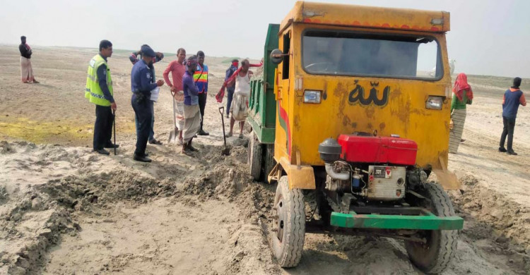 দ্মা নদীতে অবৈধভাবে বালু উত্তোলনের অভিযোগে আটক-৪