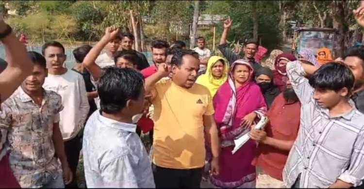 শ্রীপুরে রাস্তা কেটে পাইপ বসিয়ে ফ্যাক্টরির বর্জ্য খালে ফেলায় এলাকাবাসীর বিক্ষোভ