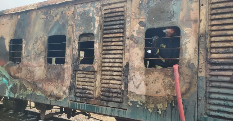 শ্রীপুরে চলন্ত ট্রেনে আগুন পুড়ে গেছে জেনারেটর বগি