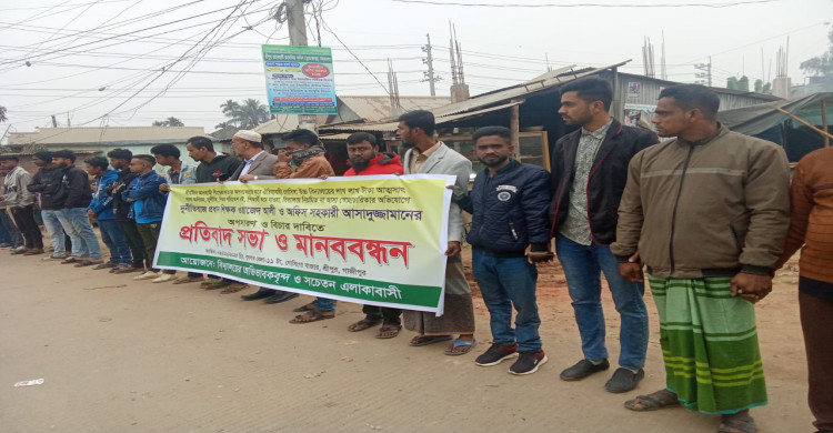 শ্রীপুরে প্রধান শিক্ষক ও অফিস সহকারীর অপসারণের দাবীতে মানববন্ধন