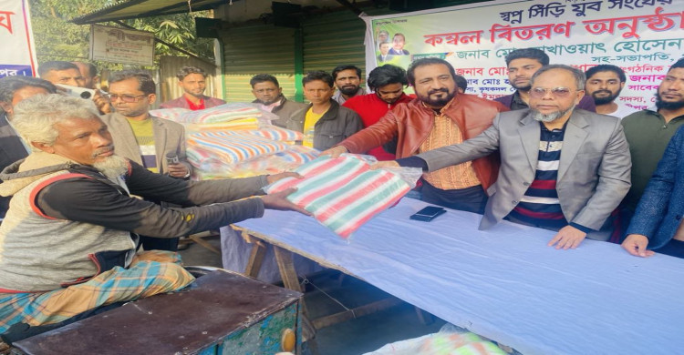 শ্রীপুরে স্বপ্ন সিঁড়ি যুব সংঘের উদ্যোগে শীতার্থ মানুষের মাঝে কম্বল বিতরণ