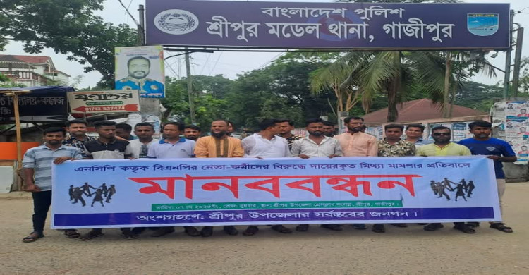 বিএনপি'র নেতাকর্মীদের বিরুদ্ধে এনসিপির দায়েরকৃত মিথ্যা মামলার প্রতিবাদে মানববন্ধন