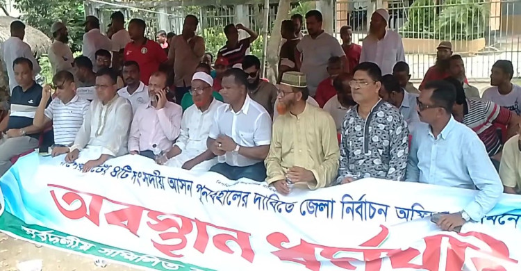 বাগেরহাটে চারটি সংসদীয় আসন পূর্ণবহালের দাবিতে তৃতীয় দফার প্রথম দিনের মত নির্বাচন অফিস ঘেরাও করে অবস্থান কর্মসূচি