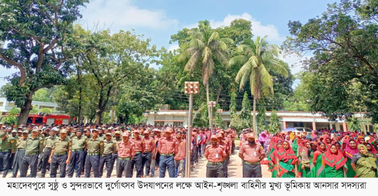 মহাদেবপুরে দুর্গাপূজায় আইনশৃঙ্খলা রক্ষার্থে মুখ্য ভূমিকা আনসার বাহিনীর