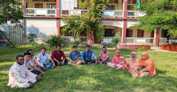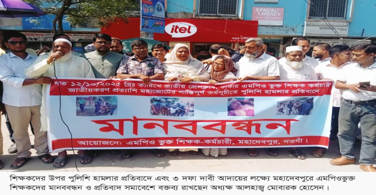 শিক্ষকদের উপরে পুলিশি হামলার প্রতিবাদে ও ৩ দফা দাবী আদায়ের লক্ষ্যে মহাদেবপুরে মানববন্ধন