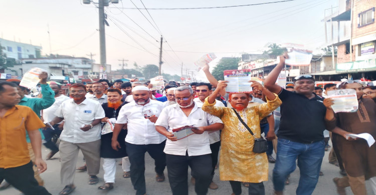 মহাদেবপুরে ধানের শীষের পক্ষে ভোট চেয়ে বিশাল প্রচারণা মিছিল
