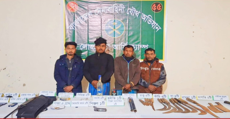 নড়াইলে যৌথবাহিনীর অভিযানে আটক ৪, অস্ত্র ও গুলি উদ্ধার