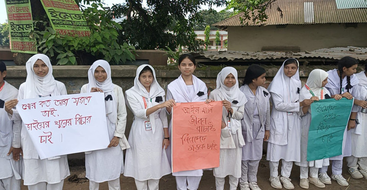 বাসচাপায় শিক্ষার্থীর মৃত্যু, নিরাপদ সড়কের দাবিতে মানববন্ধন