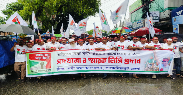 তিস্তা মহাপরিকল্পনা বাস্তবায়নের দাবিতে লালমনিরহাটে পদযাত্রা ও স্মারকলিপি প্রদান